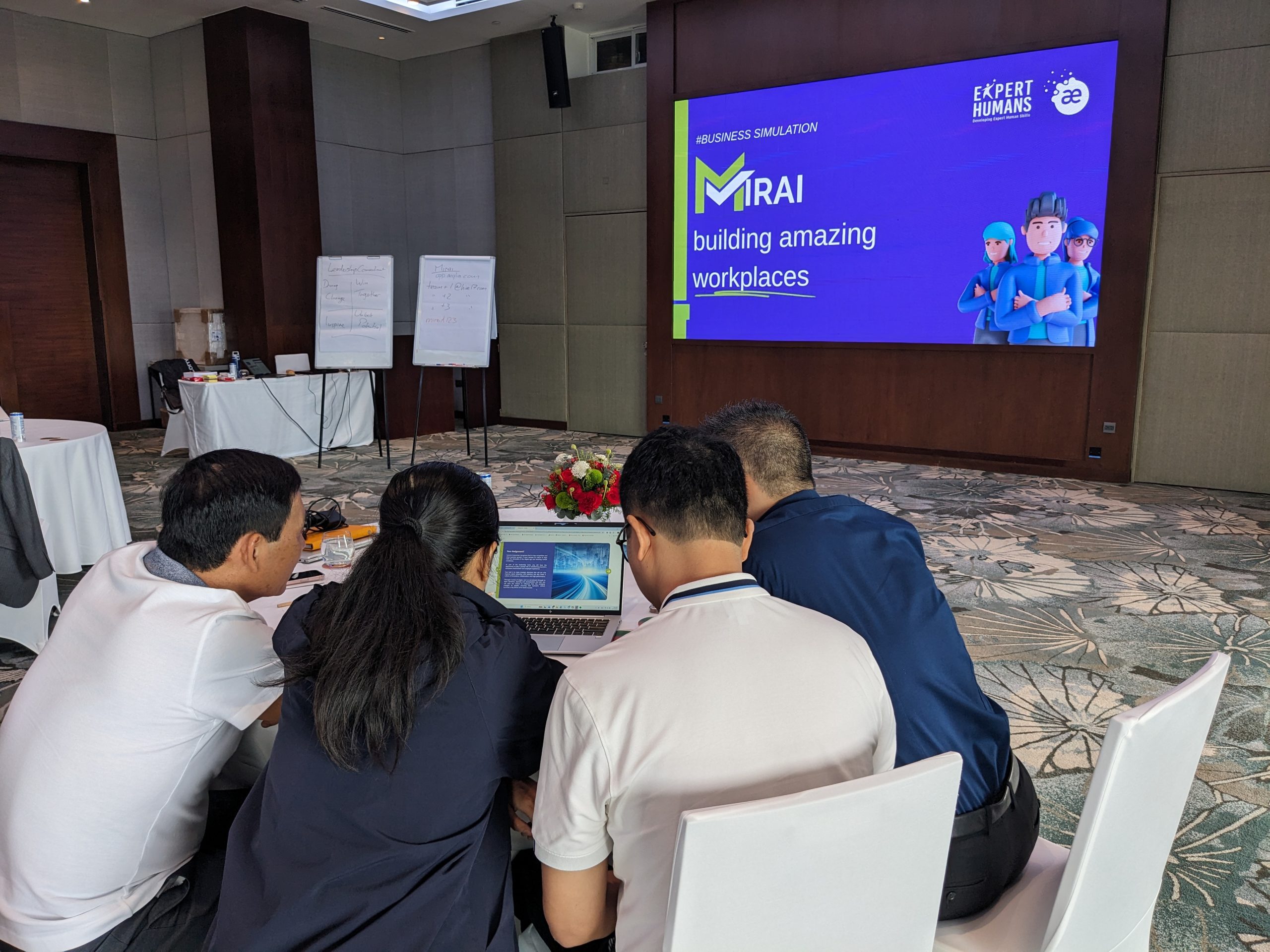 A defining element of the retreat was MIRAI: Building Amazing Workplaces, an immersive business simulation co-created with Michael Jenkins and grounded in his work, including Toxic Humans. The simulation created a realistic, pressure-tested environment where leaders experienced firsthand how everyday leadership choices shape wellbeing, trust, performance, and long-term organisational health.